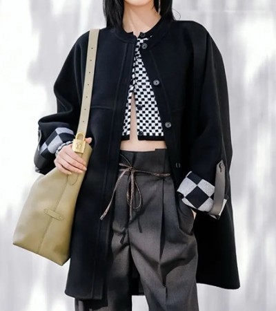 • [홍콩명품.LOUIS VUITTON] 루이비통 25SS 로고 여성 캐시미어 라운드넥 코트 자켓 (블랙), BM22890, PG, 레플리카의류,미러급사이트
