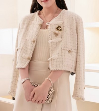 [홍콩명품.CHANEL] 샤넬 25SS 로고 여성 라운드넥 쇼트 트위드 자켓 (화이트), BM22893, PG, 레플리카의류,미러급사이트 > 여성몰
