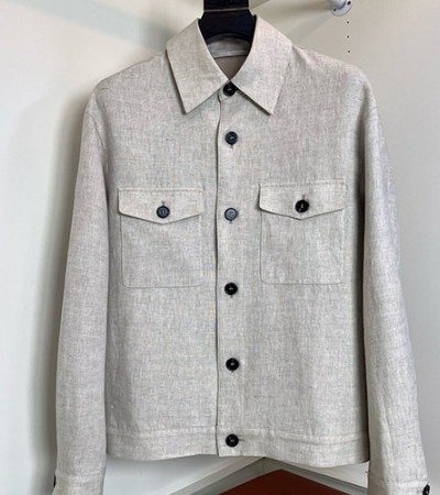 [홍콩명품.Loro Piana] 로로피아나 25SS 로고 린넨 카라 버튼 자켓 (그레이), BM22911, G5, 레플리카의류,미러급사이트 > 남자의류