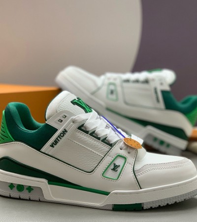 • [홍콩명품.LOUIS VUITTON] 루이비통 25SS 로고 남여 트레이너 스니커즈 운동화 (화이트-그린), SE5765, PMD, 명품스니커즈,운동화,구두,로퍼,하이탑,신발