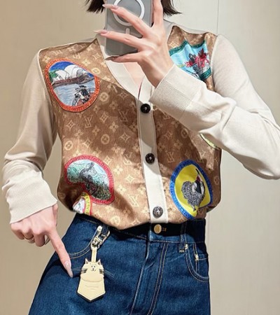 • [홍콩명품.LOUIS VUITTON] 루이비통 25SS 로고 여성 모노그램 니트 가디건 (브라운-아이보리), BM23065, MC, 레플리카의류,미러급사이트