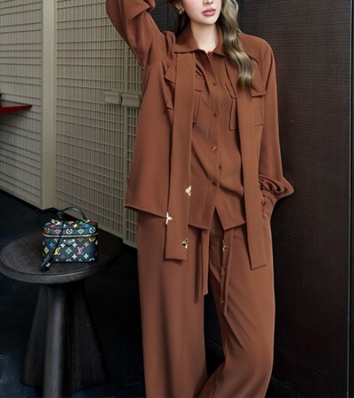 • [홍콩명품.LOUIS VUITTON] 루이비통 25SS 로고 여성 블라우스 셔츠 + 오버핏 팬츠 바지 상하의 세트 (2컬러), BM23070, MC, 레플리카의류,미러급사이트