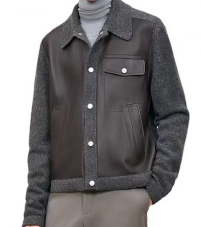 [홍콩명품.Hermes] 에르메스 25SS 로고 레더 가죽 캐시미어 레이어드 카라 자켓, BM23234, TOM, 레플리카의류,미러급사이트 > 남자의류