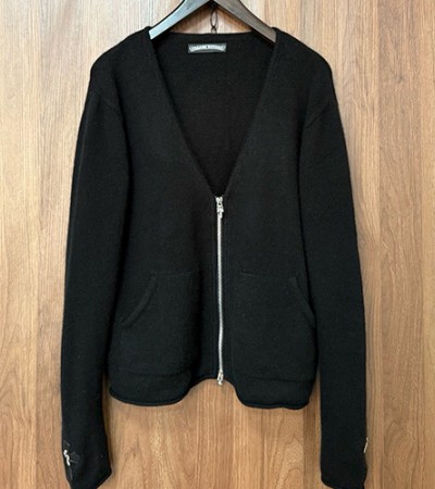 • [홍콩명품.Chrome Hearts] 크롬하츠 25SS 로고 V넥 집업 니트 가디건 (블랙), BM23238, RO 레플리카의류,미러급사이트
