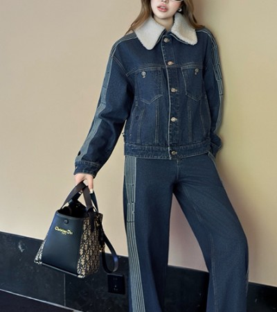 • [홍콩명품,Christian Dior] 디올 25SS 로고 여성 시어링 카라 데님 자켓 + 오버핏 데님 팬츠 진 청바지 상하의 세트, BM23288, MC, 레플리카의류,미러급사이트