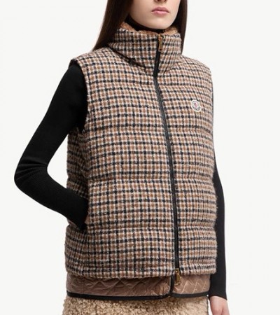 • [홍콩명품.MONCLER] 몽클레어 25SS 로고 여성 체크패턴 울 다운패딩 조끼 베스트 (브라운), BM23294, MC, 레플리카의류,미러급사이트