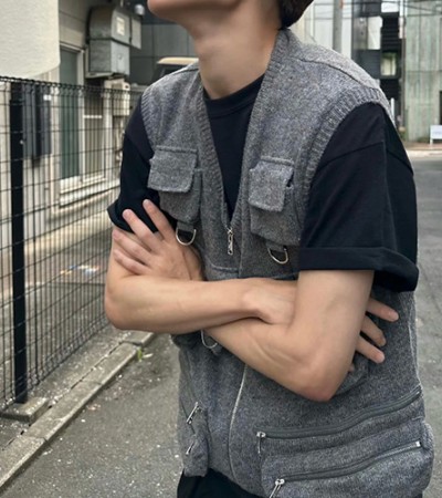 [홍콩명품,PRADA] 프라다 25SS 로고 V넥 캐시미어 조끼 베스트 (그레이), BM23332, KB, 레플리카의류,미러급사이트 > 남자의류