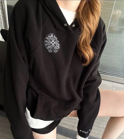 • [홍콩명품.Chrome Hearts] 크롬하츠 25SS 로고 자수 플리스 후드 티셔츠 (블랙), BM23338, KB, 레플리카의류,미러급사이트