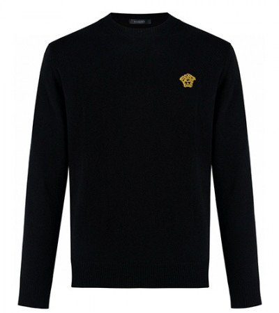 • [홍콩명품.VERSACE] 베르사체 25SS 로고 자수 니트 스웨터 (블랙), BM23357, JL, 레플리카의류,미러급사이트