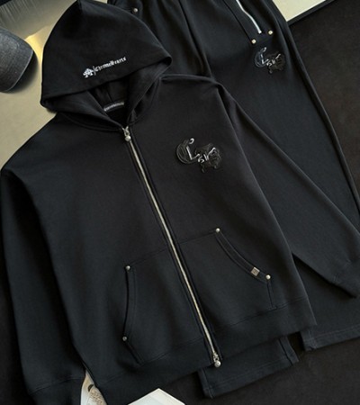 [홍콩명품.Chrome Hearts] 크롬하츠 25SS 로고 트레이닝 후드 집업 자켓 + 조거 팬츠 바지 상하의 세트 (블랙), BM23377, G5, 레플리카의류,미러급사이트 > 남자의류