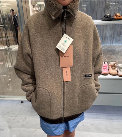 • [홍콩명품,MIU MIU] 미우미우 25SS 로고 터틀넥 플리스 집업 자켓 (4컬러), BM23419, KB, 레플리카의류,미러급사이트