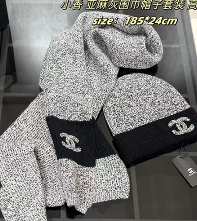 • [홍콩명품.CHANEL] 샤넬 25SS 로고 캐시미어 비니 모자 + 스카프 머플러 세트 (그레이), CA0398, 명품레플리카 모자 캡 남자여자