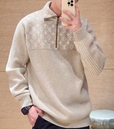 [홍콩명품.LOUIS VUITTON] 루이비통 25SS 로고 모노그램 하프지퍼 하이넥 니트 스웨터 (베이지), BM23545, KB, 레플리카의류,미러급사이트 > 남자의류