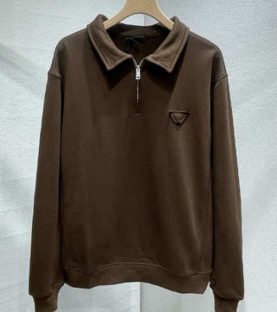 • [홍콩명품,PRADA] 프라다 25SS 로고 하프지퍼 카라 맨투맨 티셔츠 (브라운), BM23576, JL, 레플리카의류,미러급사이트