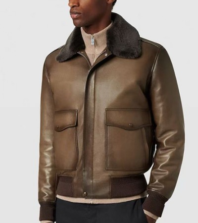 • [홍콩명품.BERLUTI] 벨루티 25SS 로고 퍼카라 레더 가죽 봄버 자켓 (브라운), BM23591, TOM, 레플리카의류,미러급사이트