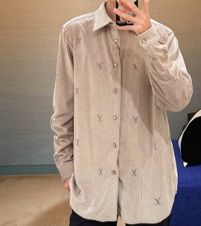 • [홍콩명품.LOUIS VUITTON] 루이비통 25SS 로고 코드류이 골덴 남방 셔츠 (그레이), BM23710, KK, 레플리카의류,미러급사이트