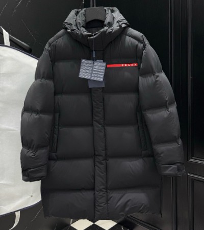 • [홍콩명품,PRADA] 프라다 25SS 로고 후드 다운 패딩 코트 자켓 (블랙), BM23735, KSM, 레플리카의류,미러급사이트