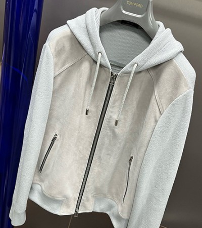[홍콩명품.TOM FORD] 톰포드 25SS 로고 레더 가죽 레이어드 후드 집업 자켓 (그레이), BM23743, KSM, 레플리카의류,미러급사이트 요약정보 및 구매