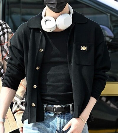 • [홍콩명품.VERSACE] 베르사체 25SS 로고 카라 니트 가디건 자켓 (블랙), BM23806, KK, 레플리카의류,미러급사이트