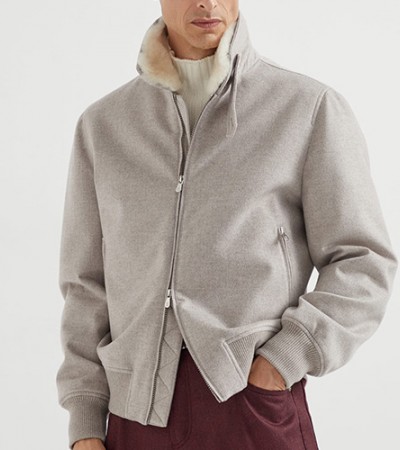 • [홍콩명품.Brunello Cucinelli ] 브루넬로 쿠치넬리 25SS 로고 시어링 캐시미어 봄버 자켓 (그레이), BM23823, PG, 레플리카의류,미러급사이트