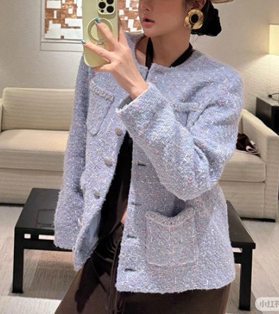 • [홍콩명품.CHANEL] 샤넬 25SS 로고 여성 라운드넥 트위드 자켓 (퍼플), BM23844, PG, 레플리카의류,미러급사이트