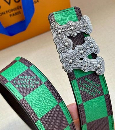 [홍콩명품.LOUIS VUITTON] 루이비통 25SS 로고 LV Initiales 다미에 레더 가죽 리버서블 벨트 (그린-2버클), 4.0cm, BT1503, 명품레플리카,인터넷쇼핑몰,남자명품,해외직구 > 벨트