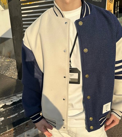 • [홍콩명품.THOME BROWNE] 톰브라운 25SS 로고 4바 캐시미어 봄버 자켓 (아이보리-네이비), BM24040, KK, 레플리카의류,미러급사이트