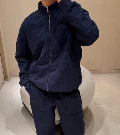 • [홍콩명품.LOUIS VUITTON] 루이비통 25SS 로고 모노그램 트레이닝 집업 자켓 + 조거 팬츠 바지 상하의 세트 (네이비), BM24045, KK, 레플리카의류,미러급사이트