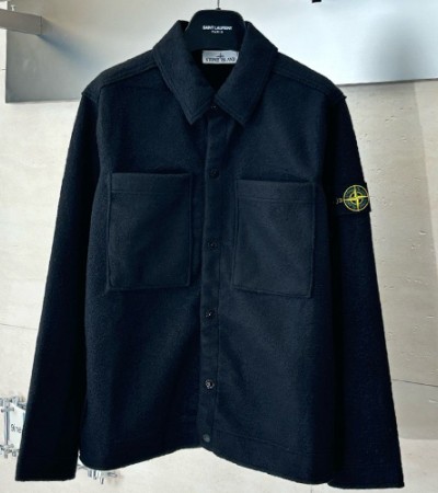 [홍콩명품.Stone Island] 스톤아일랜드 25SS 로고 탈부착 울 남방 셔츠 (블랙), BM24055, KK, 레플리카의류,미러급사이트 > 남자의류