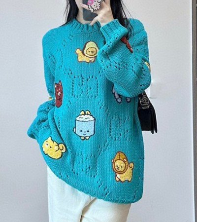 • [홍콩명품.Gucci] 구찌 25SS 로고 그래픽 니트 스웨터 (블루), BM24057, KK, 레플리카의류,미러급사이트