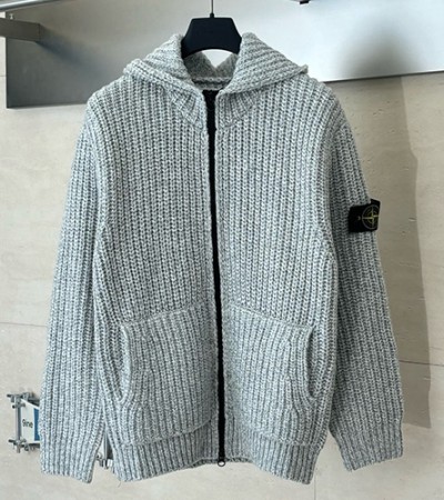 • [홍콩명품.Stone Island] 스톤아일랜드 25SS 로고 탈부착 니트 집업 자켓 (그레이), BM24060, KK, 레플리카의류,미러급사이트