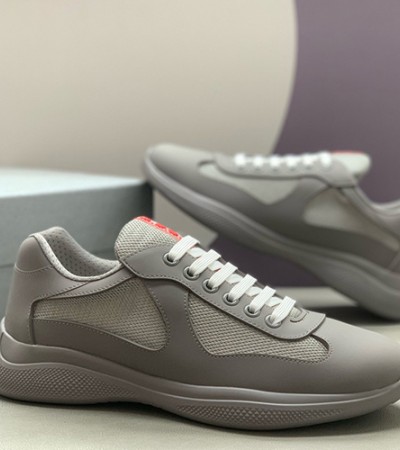 • [홍콩명품,PRADA] 프라다 25SS 로고 레더 가죽 스니커즈 운동화 (그레이), SE5896, PMD, 명품스니커즈,운동화,구두,로퍼,하이탑,신발