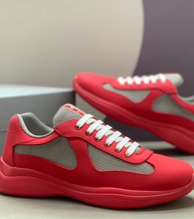 • [홍콩명품,PRADA] 프라다 25SS 로고 레더 가죽 스니커즈 운동화 (레드), SE5897, PMD, 명품스니커즈,운동화,구두,로퍼,하이탑,신발