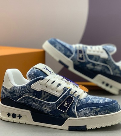 [홍콩명품.LOUIS VUITTON] 루이비통 25SS 로고 남여 모노그램 트레이너 스니커즈 운동화 (데님), SE5910, PMD, 명품스니커즈,운동화,구두,로퍼,하이탑,신발 > 신발