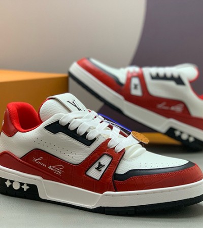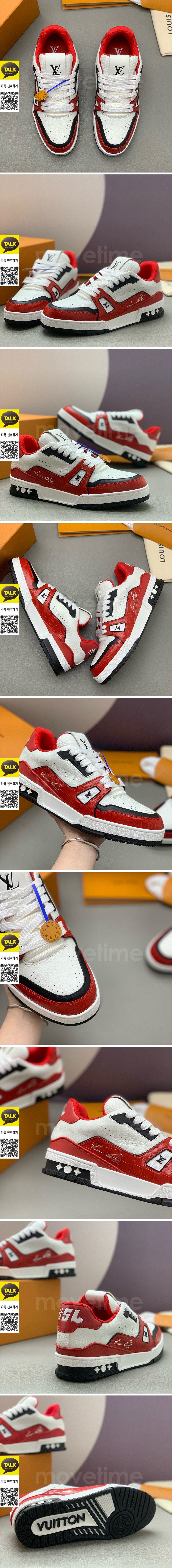 • [홍콩명품.LOUIS VUITTON] 루이비통 25SS 로고 남여 모노그램 트레이너 스니커즈 운동화 (화이트-레드), SE5911, PMD, 명품스니커즈,운동화,구두,로퍼,하이탑,신발