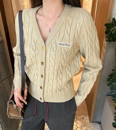 • [홍콩명품,MIU MIU] 미우미우 25SS 로고 자수 여성  V넥 니트 가디건 (2컬러), BM24090, TBG, 레플리카의류,미러급사이트