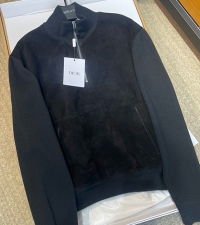 • [홍콩명품,Christian Dior] 디올 25SS 로고 하이넥 하프지퍼 레더 가죽 캐시미어 레이어드 아노락 티셔츠 (블랙), BM24103, PG, 레플리카의류,미러급사이트