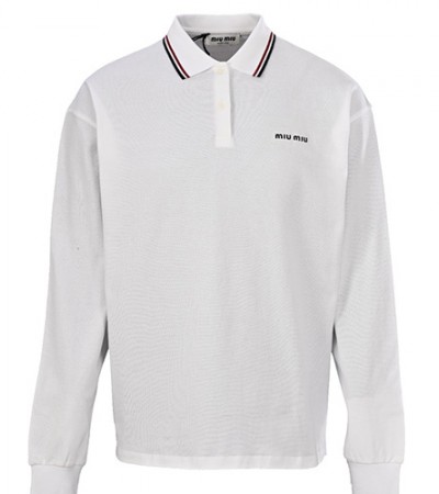 • [홍콩명품,MIU MIU] 미우미우 25SS 로고 자수 카라 폴로 긴팔 티셔츠 (화이트), BM24113, KB, 레플리카의류,미러급사이트