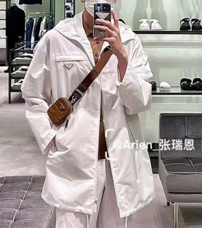 • [홍콩명품,PRADA] 프라다 25SS 삼각로고 후드 바람막이 자켓 (화이트), BM24115, KB, 레플리카의류,미러급사이트