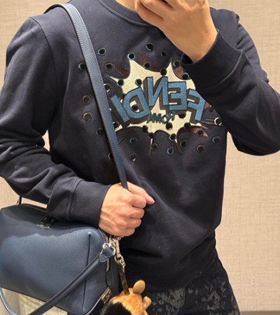 • [홍콩명품,FENDI] 펜디 25SS 로고 그래픽 자수 맨투맨 티셔츠 (네이비), BM24244, KK, 레플리카의류,미러급사이트