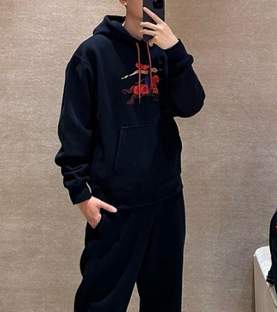 [홍콩명품.Burberry] 버버리 25SS 로고 그래픽 자수 후드 티셔츠 + 조거 팬츠 바지 상하의 세트 (네이비), BM24246, KK, 레플리카의류,미러급사이트 요약정보 및 구매