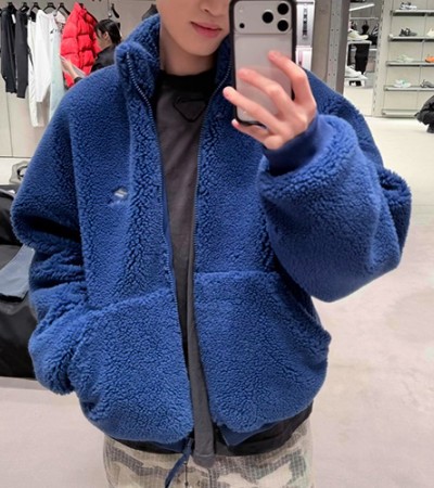 • [홍콩명품.BALENCIAGA] 발렌시아가 25SS 로고 자수 플리스 봄버 자켓 (블루), BM24268, KB, 레플리카의류,미러급사이트