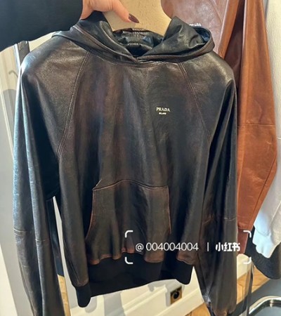 • [홍콩명품,PRADA] 프라다 26SS 로고 레더 가죽 후드 티셔츠 (브라운), BM24327, TOM, 레플리카의류,미러급사이트