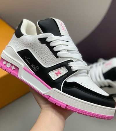 • [홍콩명품.LOUIS VUITTON] 루이비통 26SS 로고 남여 모노그램 트레이너 스니커즈 운동화 (블랙-화이트-핑크), SE6037, PMD, 명품스니커즈,운동화,구두,로퍼,하이탑,신발