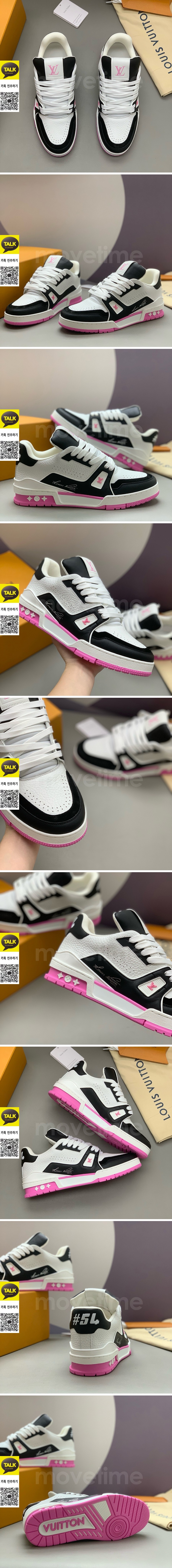 [홍콩명품.LOUIS VUITTON] 루이비통 26SS 로고 남여 모노그램 트레이너 스니커즈 운동화 (블랙-화이트-핑크), SE6037, PMD, 명품스니커즈,운동화,구두,로퍼,하이탑,신발 요약정보 및 구매