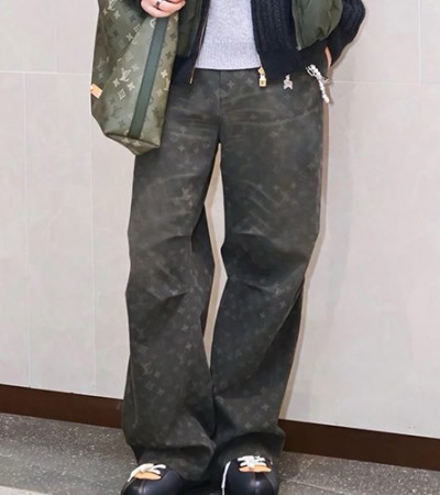 • [홍콩명품.LOUIS VUITTON] 루이비통 26SS 로고 모노그램 오버핏 데님 팬츠 진 청바지 (카키), BM24580, 레플리카의류,미러급사이트