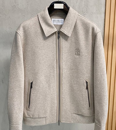 [홍콩명품.Brunello Cucinelli ] 브루넬로 쿠치넬리 26SS 로고 구스다운 카라 봄버 자켓 (베이지), BM24637, HH, 레플리카의류,미러급사이트 > 남자의류