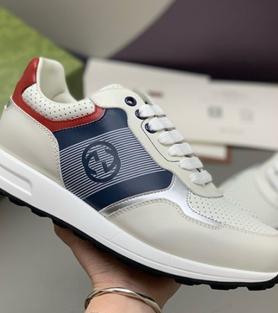 • [홍콩명품.Gucci] 구찌 26SS 로고 레더 가죽 스니커즈 운동화 (화이트-블루), SE6101, PMD, 명품스니커즈,운동화,구두,로퍼,하이탑,신발