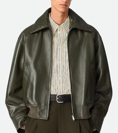 [홍콩명품.BOTTEGA VENETA] 보테가베네타 26SS 로고 레더 가죽 인트레치아토 카라 봄버 자켓 (카키), BM24899, TOM, 레플리카의류,미러급사이트 > 남자의류