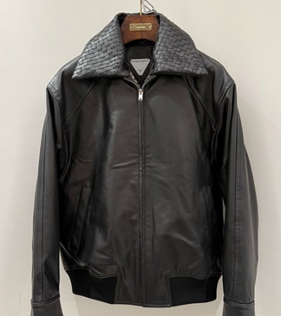 • [홍콩명품.BOTTEGA VENETA] 보테가베네타 26SS 로고 레더 가죽 인트레치아토 카라 봄버 자켓 (블랙), BM24900, TOM, 레플리카의류,미러급사이트
